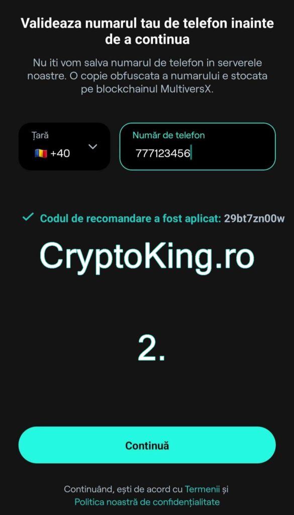 - Pentru a crea un portofel nou, alegeți acea opțiune, introduceți numărul de telefon și codul de verificare.