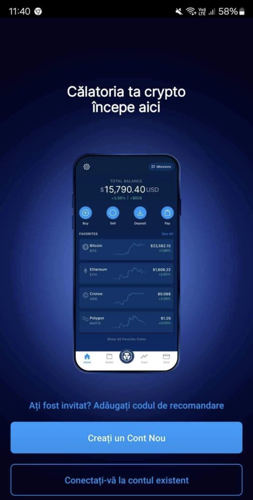 - Descărcați aplicația Crypto.com din App Store sau Google Play