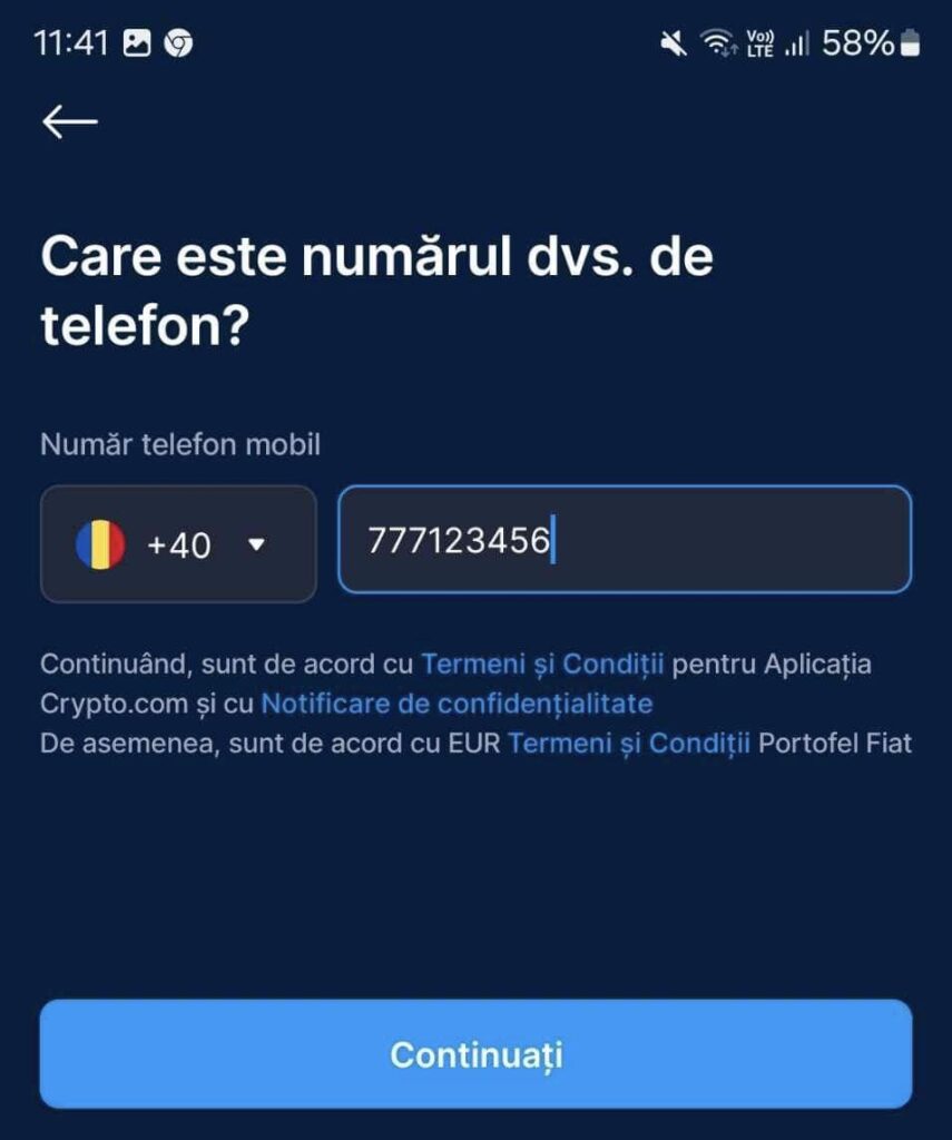 - Continuați verificarea KYC trimițând un număr de telefon, confirmându-l