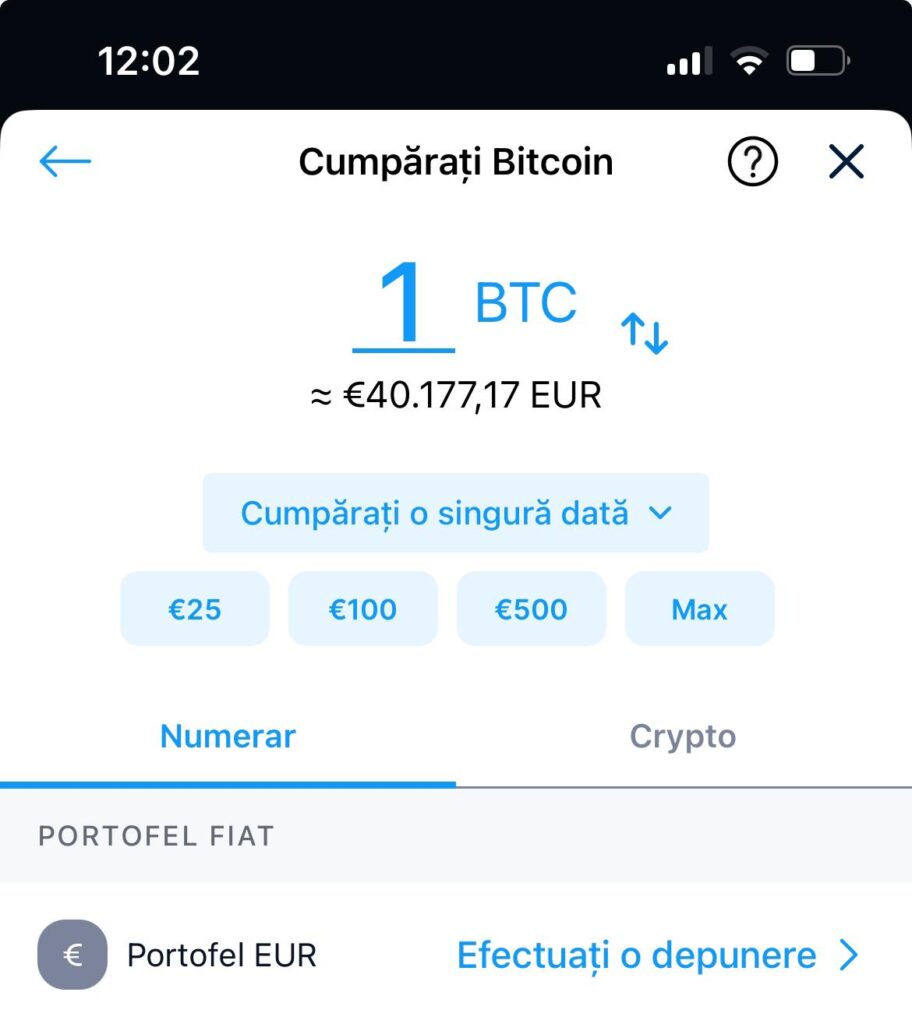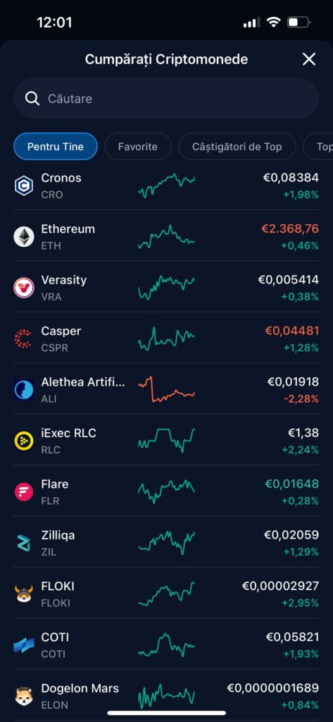 Poți cumpăra cripto și cu un card de lei sau euro. Alegi ce criptomonedă vrei să cumperi BTC, ETH, CRO sau ce dorești tu. Apoi adaugi cardul cu care vrei să plătești și efectuezi tranzacția.