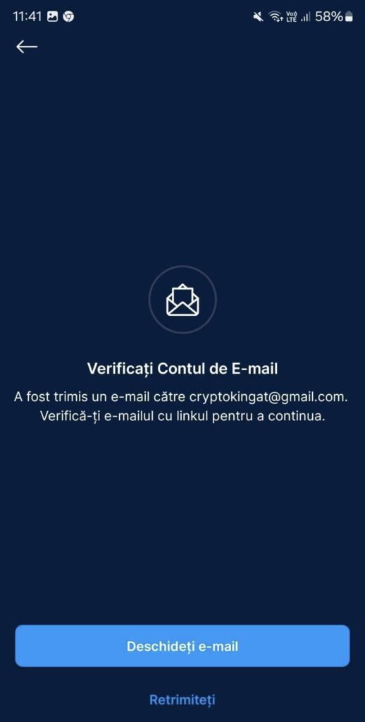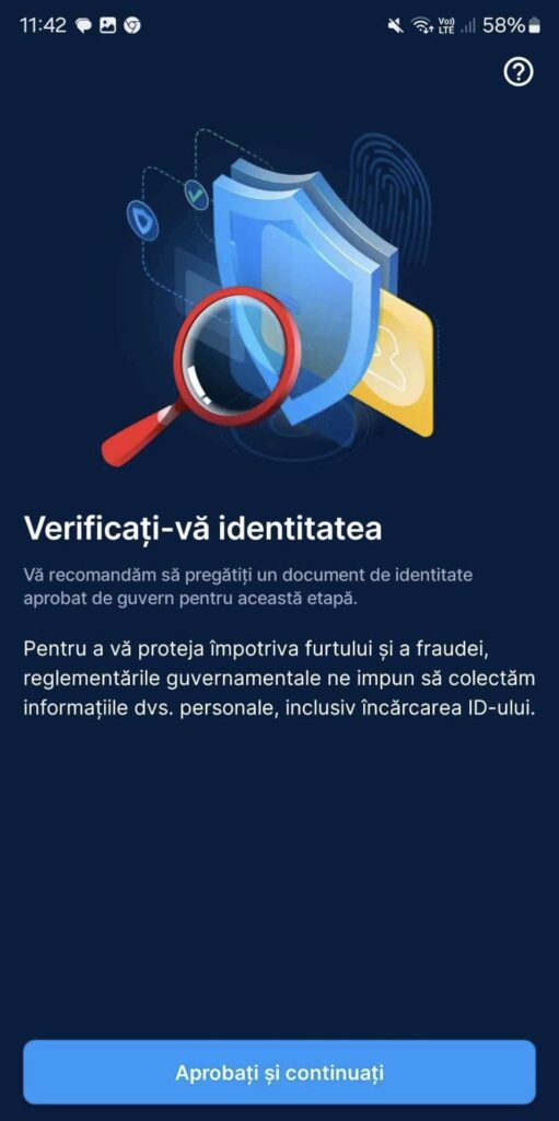 și trimițând documentele de identificare - Verificare KYC reușită. Primiți e-mail și notificare push pentru primirea bonusului de recomandare.