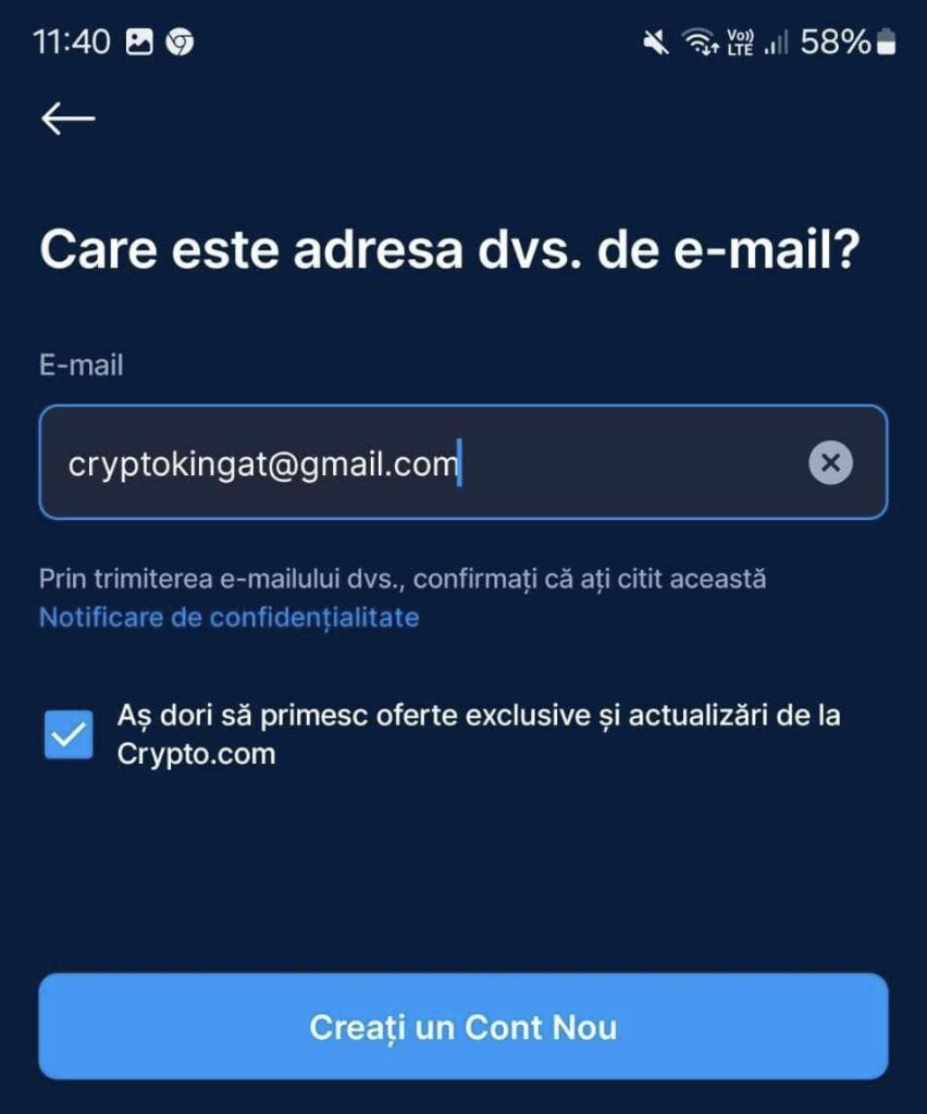 - Confirmați e-mailul prin aplicația Crypto.com în termen de 72 de ore de la trimiterea e-mailului prin intermediul portalului web Referral Link